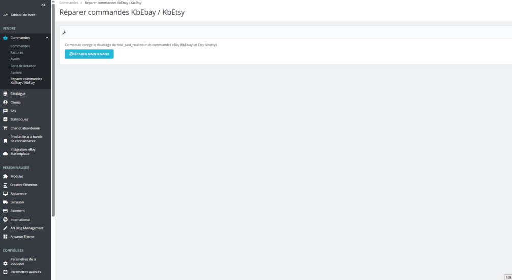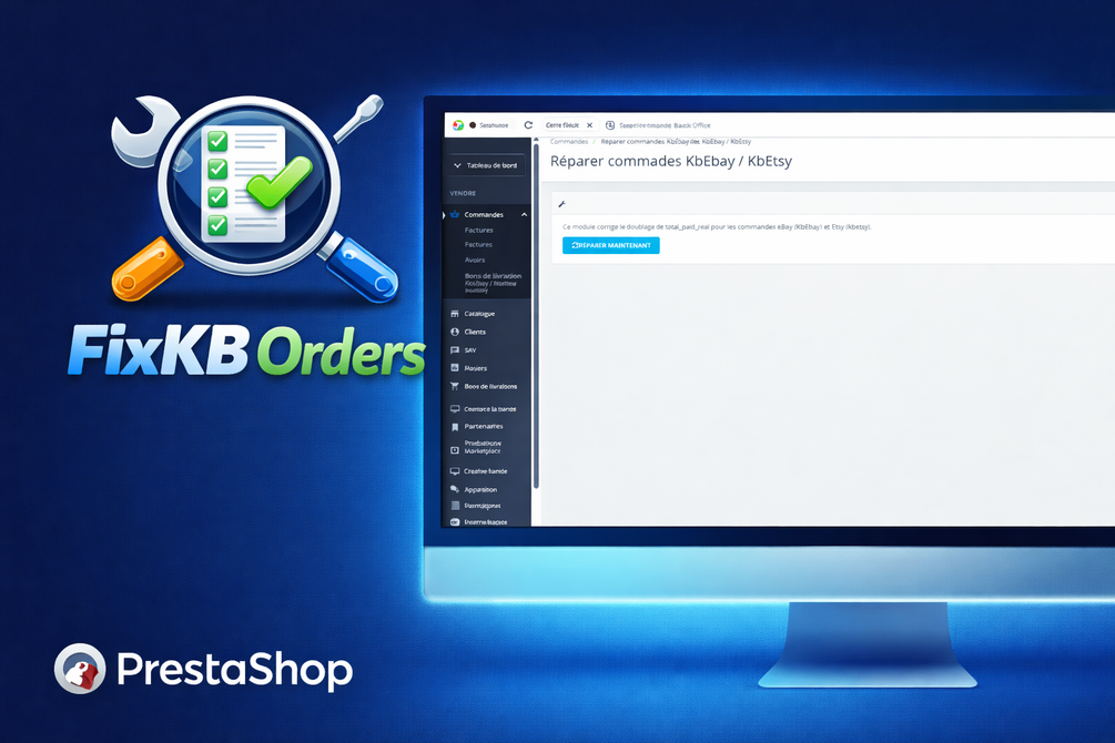 You’ll get a ready-to-use PrestaShop module that fixes duplicated total_paid_real values caused by KbEbay and KbEtsy imports, in one single click, directly from the Back Office.